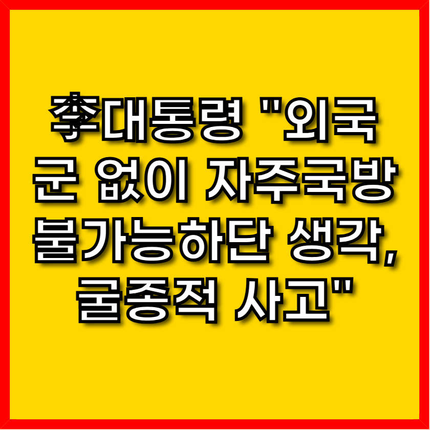이 대통령은 일부에서 나타나는 굴종적 사고에 대해 날카롭게 비판했다. 그는 "우리나라가 외국 군대 없으면 자주국방이 불가능한 것처럼 생각하는 일각의 인식"을 지적하며, 노무현 대통령이 '똥별'이라는 과한 표현까지 쓰며 국방비를 많이 쓰고도 외국 군대 없이는 국방을 못 한다는 인식을 질타했던 것을 언급했다. 이는 국민의 저력과 자주국방 의지를 강조하며, 자립적인 안보 태세를 갖춰야 한다는 메시지로 해석된다.